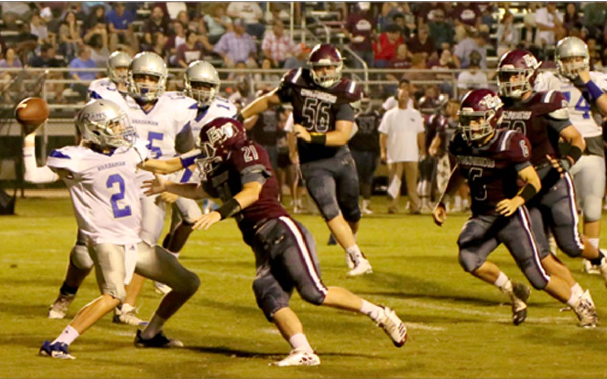 The Rams threw another interception and Tyrik Pittman then scored on a 33-yard run with three seconds left in the first. Burleson’s PAT was good and EW led 42-0.