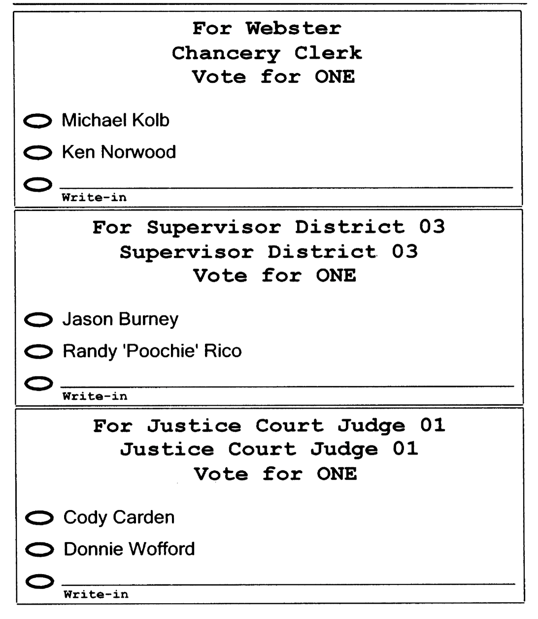Only one runoff will be on ballots countywide, which is the open seat for chancery clerk. The candidates are Michael Kolb and Ken Norwood, each of whom received about 35% of the vote in the first primary on Aug. 8.