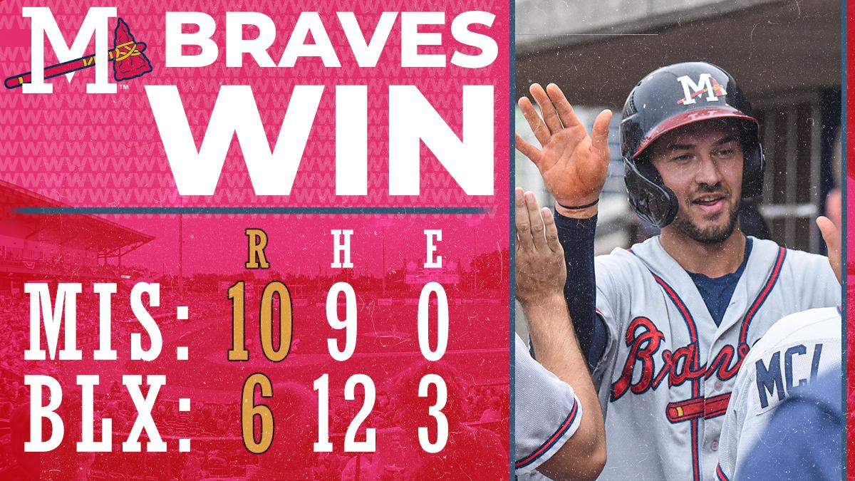 The M-Braves put up another crooked number in the fifth inning to extend the lead. Justin Dean drew a Zavolas walk to open the frame, and then Langeliers belted a 427-foot homer to left-center, pushing the lead to 6-3. The homer was the 23-year-old's fifth in six games and league-best eighth on the season. Langeliers finished 1-for-5 with the homer and three RBI. Two batters later, Rijo smashed a solo home run off a light pole down the left-field line for his second home run of the season to make it 7-2. Rijo was 1-for-4 and extended his team-best hitting streak to eight games.