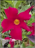 I love the brightly colored red, pink, apricot and white, trumpet-shaped blooms of mandevillas that are displayed against a backdrop of dark-green, leathery foliage. My favorite colors are red and apricot, but with this variety, you’re sure to find one that compliments the look you are seeking.