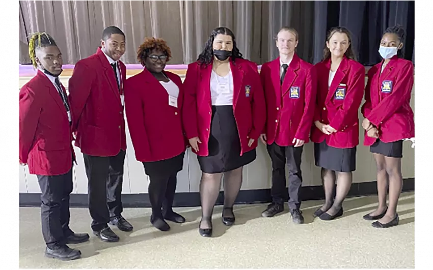 Students also competed in team leadership competitions. The SkillsUSA Opening and Closing Ceremonies career competition evaluates the contestants’ understanding of the symbolic representation of the colors and assembled parts of the SkillsUSA emblem and challenges students to demonstrate teamwork and professional presentation skills. Members of the Opening and Closing Team are Bella Juarez, president, Jaci Weeks, vice-president, Chase Bell, secretary, Journee Banks, historian, Royce Mosley, parliamentarian, Za’Raiyah Jones, treasurer, and AJ Hobbs, reporter.