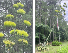 The plant is in full bloom outside the home of Phillip and Betty Jo Medders on Ellison Road in the Clarkson community. It is 28 years old and the flower stalk is 20-25 feet tall, according to Betty Jo Medders.