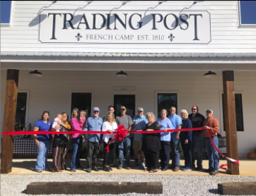 The French Camp Trading Post held a grand opening on Saturday, Oct. 7. There was a bounce house, refreshments, and giveaways during the event. Pictured are: Amanda McBride, Lindsey Bruce, Shannon Stevens-Myers, French Camp Mayor Glen Barlow, Sherry Kirby, Van Anderson, Tyler Kirby, Owner and Alderman Bo Kirby, Alderwoman Jan Henderson, Alderwoman Becky Stevens, Supervisor Chris McIntire, Tax Assessor Lori Kerr, Supervisor Joey Stephenson and Randy Bridges.