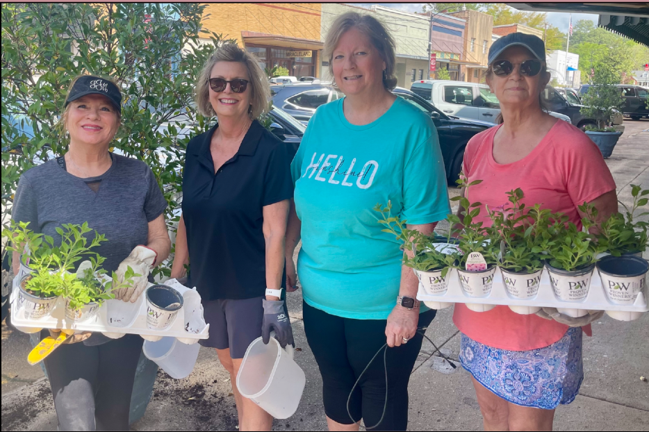 The Eupora Beautification Committee prepared planters for the summer on April 15 when volunteers planted petunias in all the planters on Main Street.