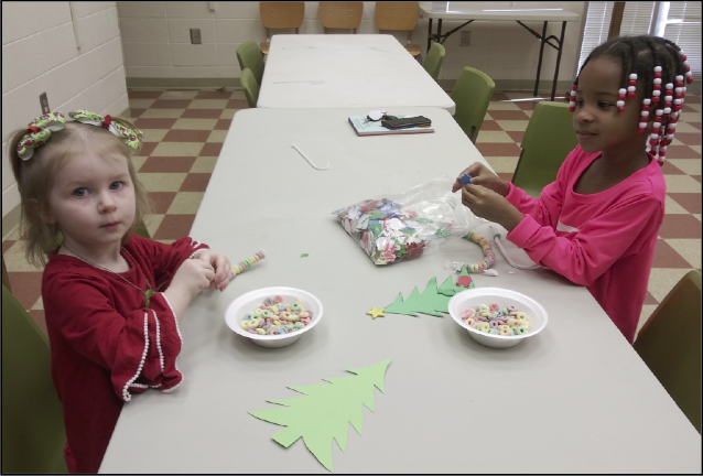 After the story, the children made candy canes with pipe cleaners and Fruit Loops cereal.