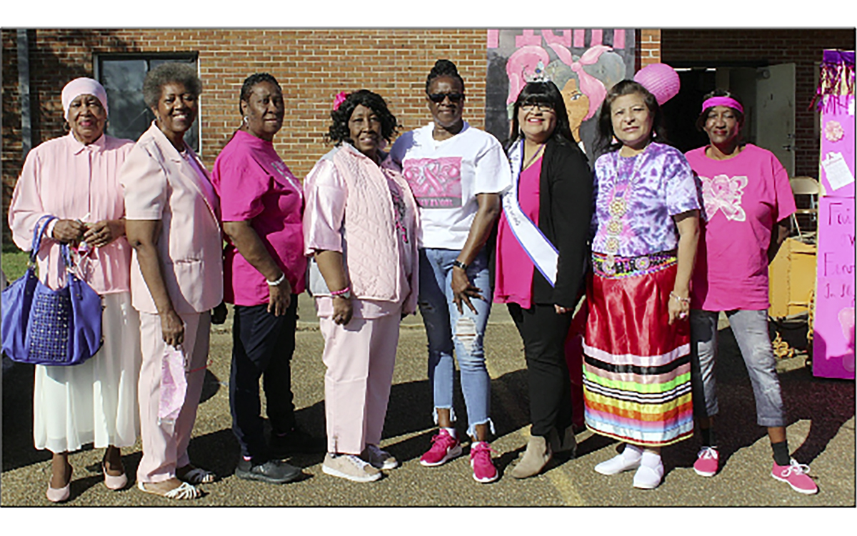 Pictured (l-r): Rev. Lorene, Guise, Mattie Davis, Barbara Carter, Neishell Jordan, Janice Turner, Pink Celebration Founder, Deidre Tubby, Mississippi Cinderella Empress for 2021-2022, Melanie Benn and Carolyn Barnes.