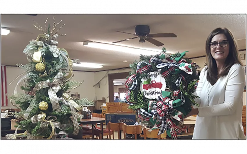The Maben Garden Club program for November featured Melissa Walker, the new owner of Friendly Florist in Maben, as she decorated a $20 Christmas tree from a local store with bows, balls and bling.