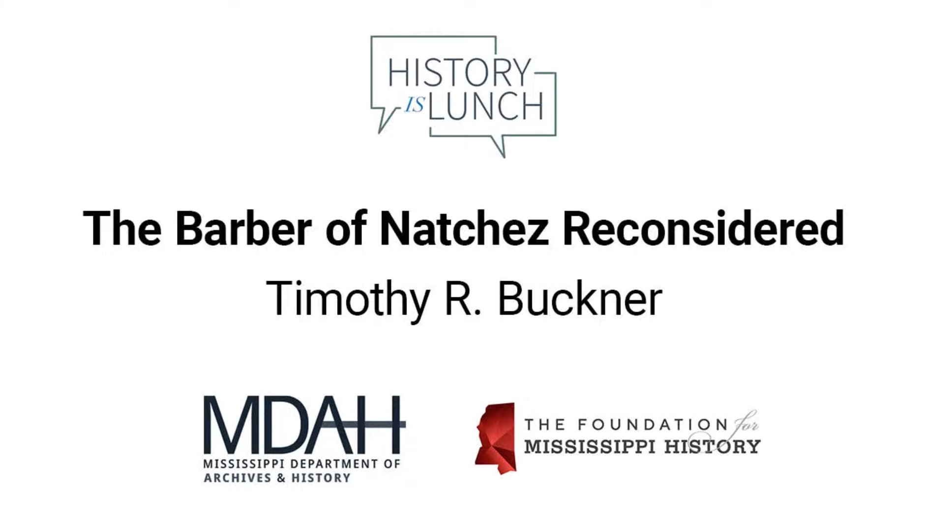 On February 7, 2024, Timothy R. Buckner presented “The Barber of Natchez Reconsidered” as part of the History Is Lunch series.