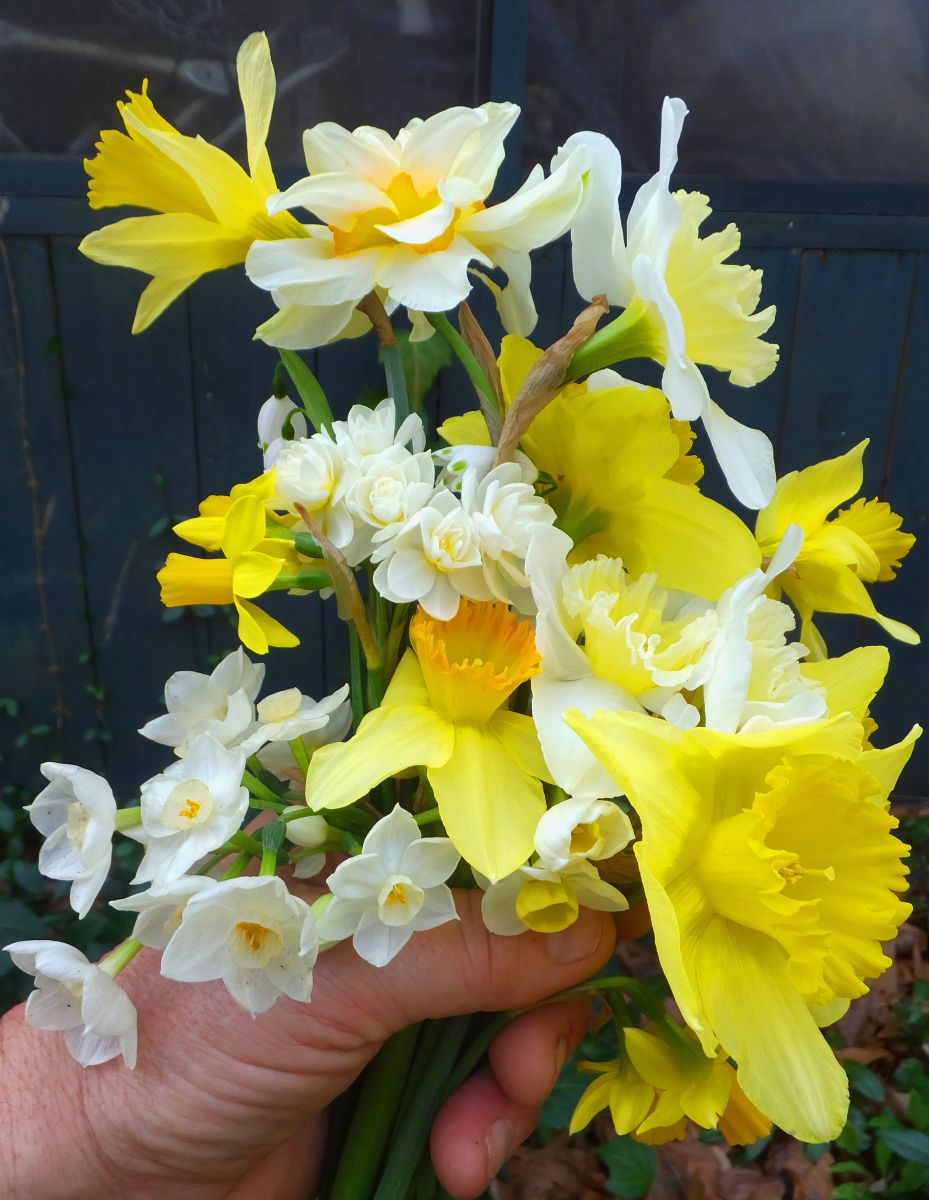 And by the way, call them what you want, even buttercups, but all daffodils, including trumpet, paperwhites (which smell like cat urine to some folks), doubles, and jonquils with their thin, quill-like leaves, are officially Narcissus. In the 1600s the flowers called asphodel in English gradually got muddled into ‘affodele which became daffadilly and now just daffodil.