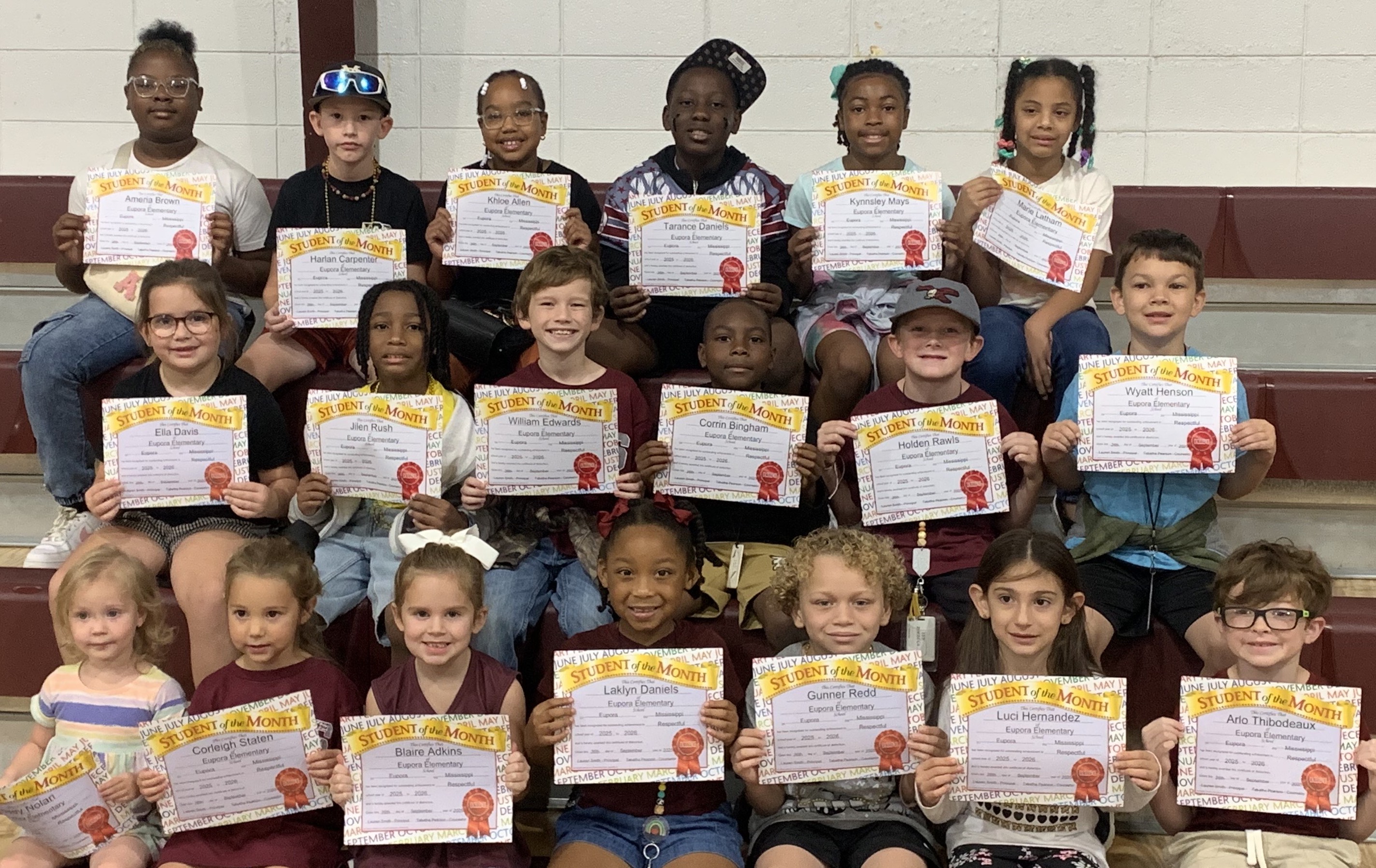 Eupora Elementary School Students of the Month for September include (front row) Josey Nolan, Corleigh Staten, Blaire Adkins, Laklyn Daniels, Kamara Liggins, Gunner Redd, Luci Hernandez, Arlo Thibodeaux, (middle row) Ella Davis, Jilen Rush, William Edwards, Corrin Bingham, Holden Rawls, Wyatt Henson, (back row) Ameria Brown, Harlan Carpenter, Khloe Allen, Tarance Daniels,…