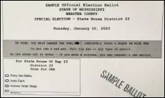 Ballots from Calhoun, Grenada, Lafayette and Webster counties show Andy Stepp with 1,142 votes, or 48.49%, and Perry Van Bailey with 896 votes, or 38.05%, according to broadcast reports.
