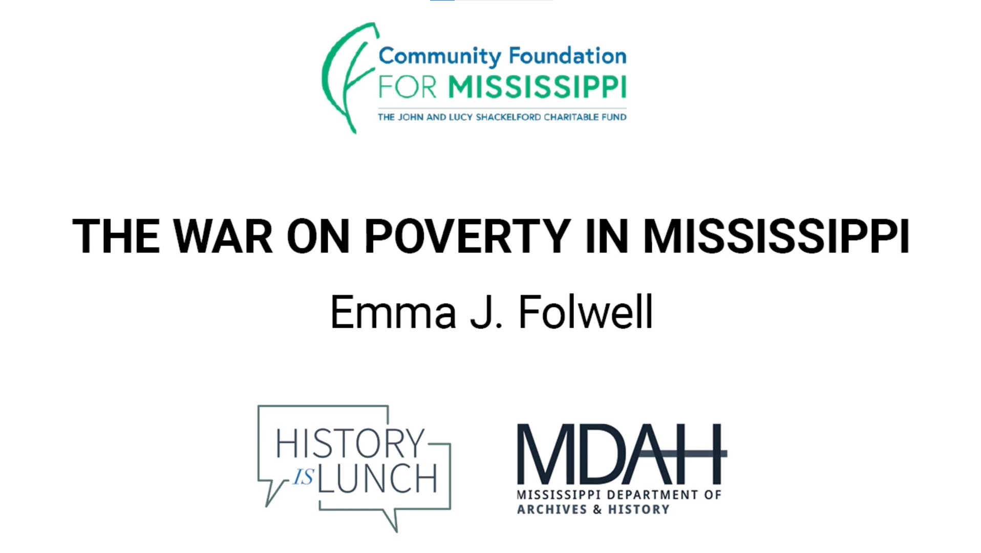 On September 22, 2021, Emma J. Folwell discussed her new book The War on Poverty in Mississippi: From Massive Resistance to New Conservatism as part of the History Is Lunch series.