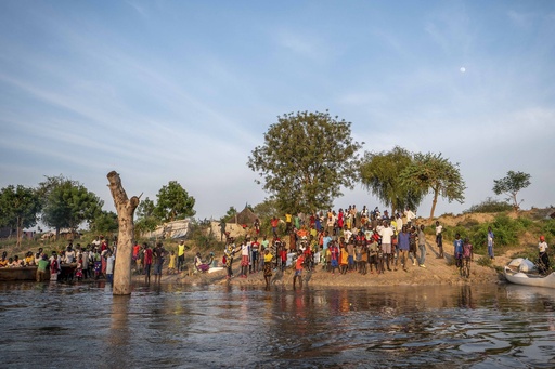 AYOD, South Sudan (AP) — Long-horned cattle wade through flooded lands and climb a slope along a canal that has become a refuge for displaced families in South Sudan. Smoke from burning dung rises near homes of mud and grass where thousands of people now live after floods swept away their village.