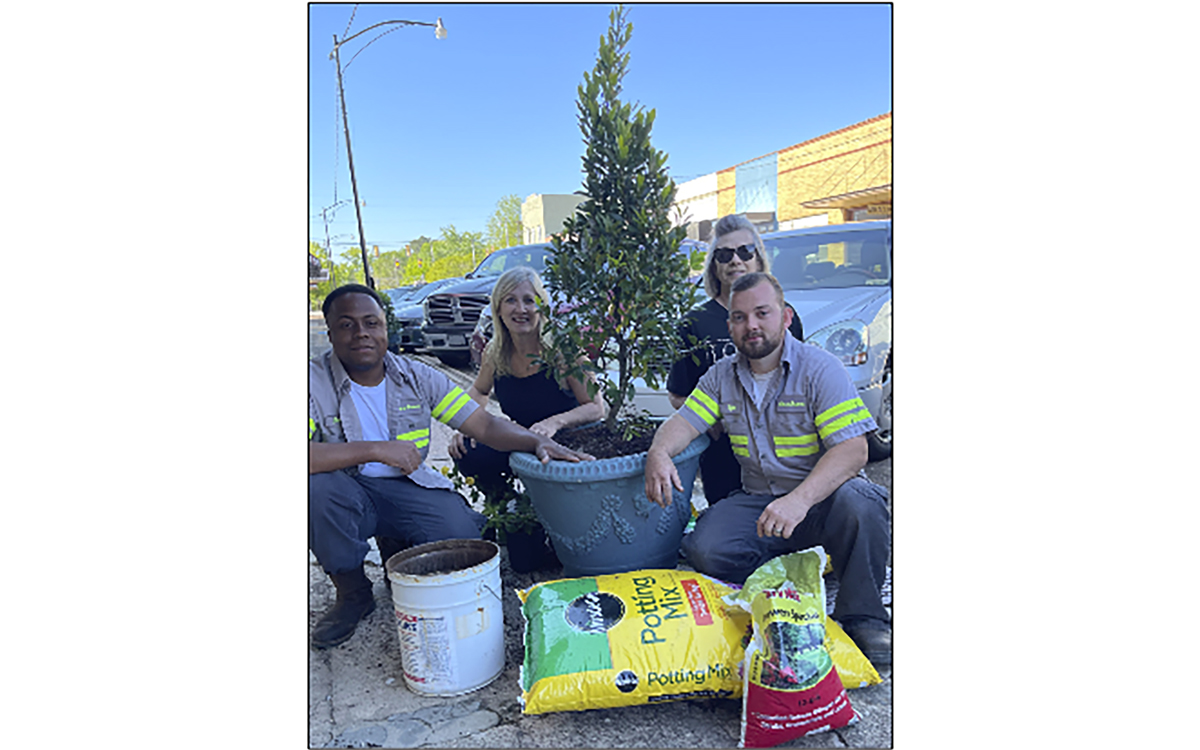 Teresa Ozborn and Cathy Embry, co-chairs of the Eupora Beautification Committee, assisted by the Eupora Street Department, placed cherry laurel shrubs in planters the morning of April 12.