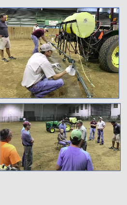 The training consisted of calibrating a boom sprayer, as well as a boom-less sprayer. Instructors demonstrated the 1/128th acre, and 1/8th acre methods. These techniques are not hard, and will enable the applicator to safely, and correctly apply any pesticide at its most effective rate per acre.