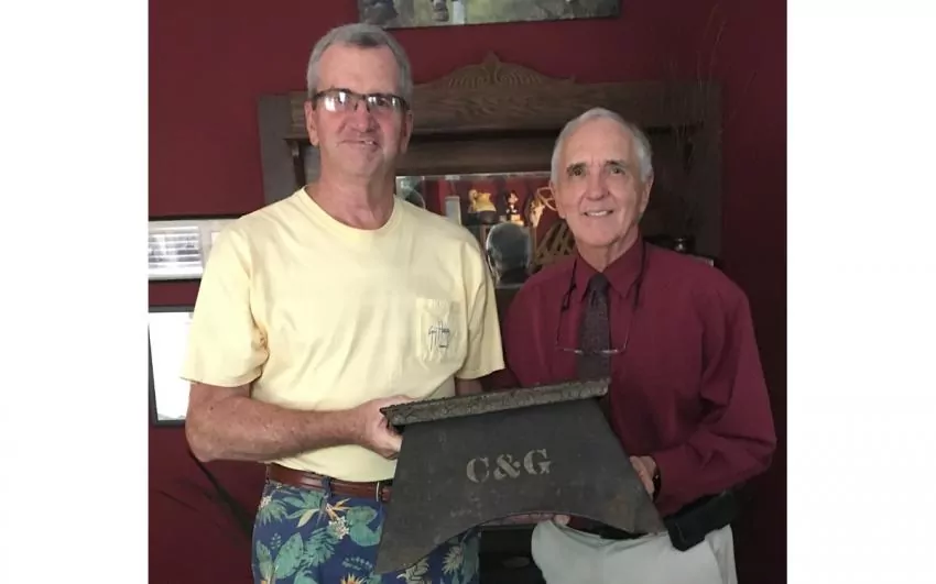 Eupora native Michael Brannon of Hernando presented a step box from the Columbus and Greenville Railroad to Bobby Johnson of Eupora on May 13. Brannon included this letter with the step box: