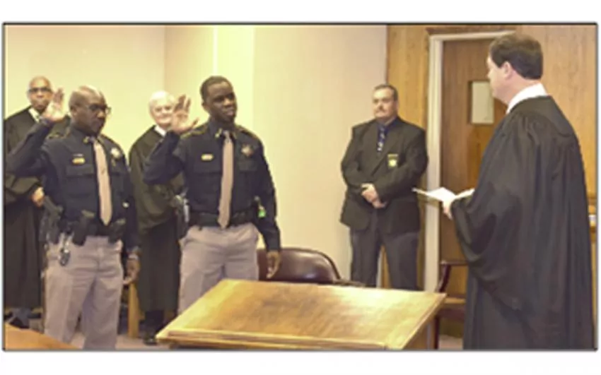 Kirk swore-in constables Ed Hunt and Deterron ‘Ty’ Hardin. Hardin took the constable oath for the first time.