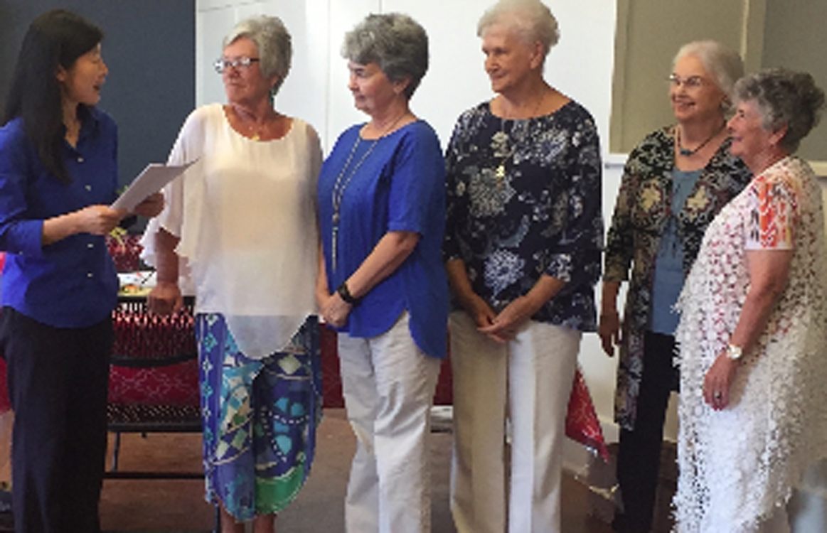 She then presented the flower representing each office. Dee Saylors assumed the office of president; Jane Collins continued as vice president; Lynn Head will assume the duties of secretary and Martha McMinn will continue as treasurer. Bi then had the membership to pledge to support, encourage and provide assistance to the new officers.