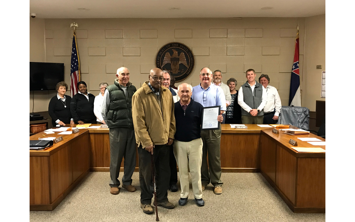 William Cooper was presented with a resolution of honor and thanks on behalf of the Mayor, Board of Aldermen of the City of Louisville, and city officials for his service on the Louisville-Winston County Airport Authority (LWCAA) in January.