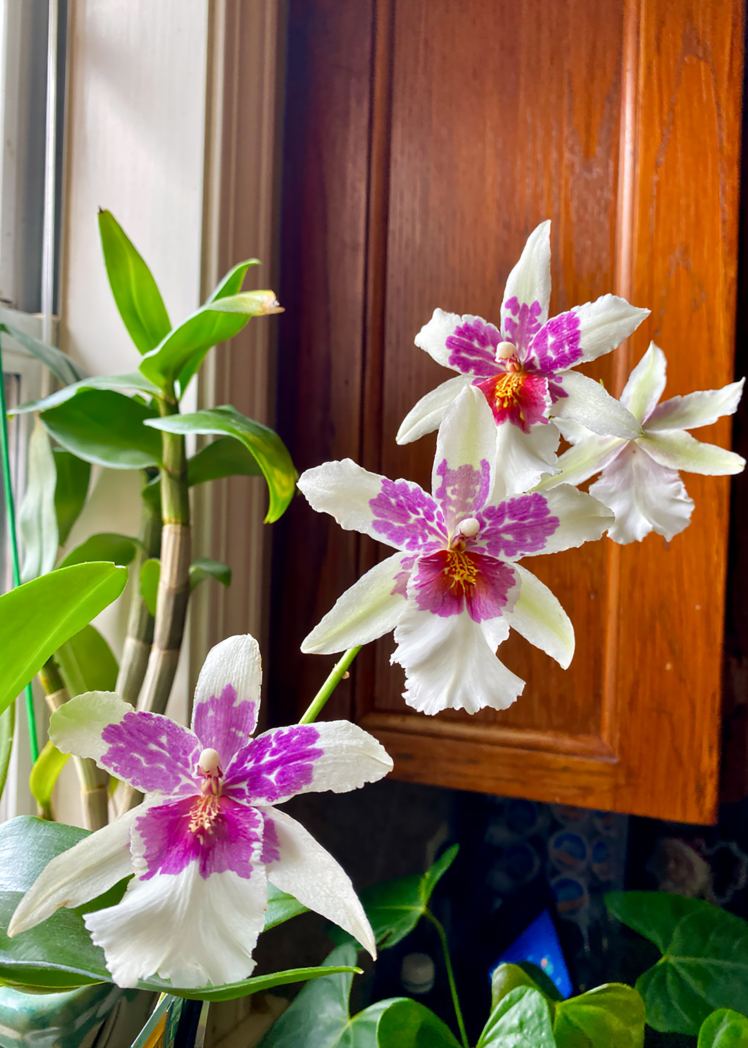 A favorite orchid in my collection is a Beallara Big Shot called Hilo Sparkle. It blooms at Valentine’s Day, making it a good choice as a gift.