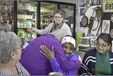 The end of November already and for those who follow seasons, the beginning of Advent this weekend, the awaiting of the Lord as He comes at Christmas. Oh my…One of the highlights for me, however, during this month was the GIRLFRIENDS FAMILY REUNION. (see pic). Family reunions are popular as readers well know and often since they do not take place every year those who come are so happy to see one another, to be with one another, to catch up. Ours was held at COX’S CORNER GROCERY @ THE CROSSROADS in Weir on the way to French Camp. And didn’t we eat! What lovely help we received, Stephanie and Jeff and Gabby…thank y’all so much!
