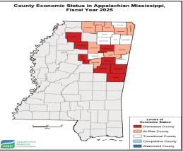 The Appalachian Regional Commission has released its Fiscal Year 2025 economic status designations. ARC released the latest designations on June 27. The designations use an indexbased economic classification system to monitor the economic status of Appalachia's 423 counties, which include Webster. Designations help ARC determine grant match rates, identify research topics and direct investments to the region's most distressed communities. The system involves the creation of a national index of county economic status through a comparison of each county’s averages for three economic indicators — three-year average unemployment rate, per-capita market income and poverty rate — with national averages. The resulting values are summed and averaged to create a composite index value for each county. Each county in the nation is then ranked, based on its composite index value, with higher values indicating higher levels of distress. Each Appalachian county is classified into one of five economic status designations, based on its position in the national ranking: distressed, at-risk, transitional, competitive or attainment, which are the economically strongest counties. Webster County In FY 2025, 77 counties are designated as distressed, 103 as atrisk, 226 as transitional, 14 as competitive and three have reached attainment. Webster County is designated as a transitional county in the upcoming fiscal year. The maximum ARC share for projects funded in transitional counties is 50%. This is an improvement from the at-risk designation the county has had the two previous years. Transitional counties are those transitioning between strong and weak economies, according to ARC. They make up the largest economic status designation. Transitional counties rank between the worst 25% and the best 25% of the nation’s counties. Webster again has one distressed area in FY 2025, which is in the south-central part of the county bordering Choctaw. Distressed areas (census tracts) are designated only in at-risk and transitional counties. The designation is assigned to areas that have a median family income no greater than 67% of the U.S. average and a poverty rate 150% of the U.S. average or greater. ARC provided this data regarding the county’s economic status: • Three-year average unemployment rate (2020-22): 5.5% • Per-capita market income, 2022: $28,214 • Poverty rate 2018- 22: 15.5% • Quartile (1 is the best) FY 2025: 3 Source: arc.gov