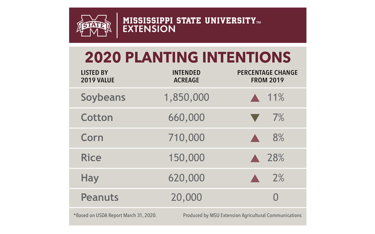 STARKVILLE, Miss. -- Weather always plays a role in the spring planting decisions of Mississippi row crop producers, but the market impact of the ongoing COVID-19 pandemic is another variable they will have to consider in 2020.