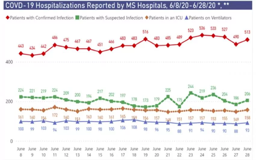 The number of COVID-19 cases in Webster County increased by four over the past week, according to the Mississippi State Department of Health. Locally as of Monday morning, 122 positive test results had been reported since March 11. That is up from 118 cases the week before. The number of deaths countywide remained at 10, which includes nine at a long-term care facility. The number of LTCF cases also remained the same — 52. Countywide, the breakdown by race and ethnicity for the 122 total cases is categorized by MSDH as 69 white, 44 Black, five other and four unknown. Of the 10 deaths countywide, seven were white and three were Black. Safe Return order extended On Friday, Gov. Tate Reeves extended his Safe Return order an additional week to protect Mississippians and limit transmission as cases rise in the state. As of Monday, COVID-19 totals for Mississippi were nearly 26,570 cases and nearly 1,060 deaths. Consulting with Dr. Thomas Dobbs and state health experts, Reeves signed a new executive order to extend the social distancing guidelines and restrictions under the Safe Return order until 8 a.m. July 6. “The threat is far from over. Extending our Safe Return order will give us much-needed time to assess this rapidly-changing situation and adapt our response to slow the spread,” said Reeves. “We’re taking every step possible at the state-level to protect public health, but we can’t do it alone. The only way through this pandemic is together. I urge my fellow Mississippians to do their part to help limit transmission in their communities and take care of each other.” Reeves also signed an additional three executive orders Friday. He extended the terms of interim or hold-over appointees until the end of the 2021 legislative session and extended unemployment benefits provided to Mississippi workers until the end of this July.
