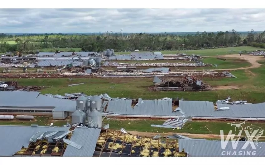 STARKVILLE, Miss. -- Tornadoes and damaging storms that swept through the state Easter Sunday afternoon and evening, killing 11 Mississippians also caused devastating losses to growers in the poultry industry.