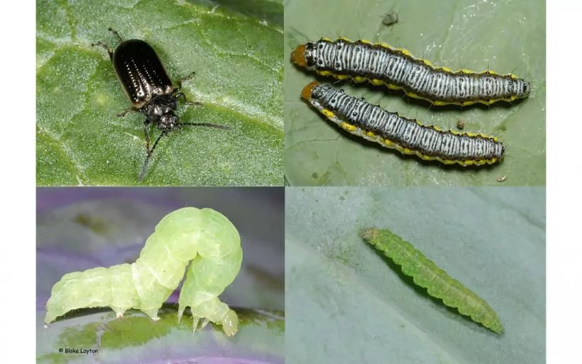 “There are also some important beetle pests,” Layton said. “Flea beetles are quite small, but heavy infestations cause damage because the insects chew tiny holes in the leaves and can seriously damage young plants.”