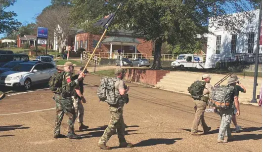 The Webster County community observed Veterans Day 2024 with various activities Monday. Some local veterans began the day with a ruck march from the veterans memorial in Mathiston to the one at the Eupora Post Office. There, they joined others in Joe H. Moorhead VFW Post 3806ís Veterans Day ceremony at 11 a.m. Senior Vice Cmdr. Bill Forster welcomed everyone, and the Rev. Justin Davis, pastor of Grace Covenant Church in Maben, opened with prayer. East Webster High School band members Peyton Adams, Cael Fiebig and Bradley Forster then performed the national anthem on trumpet. Forster, in his remarks that followed, noted that Veterans Day is celebrated each year on Nov. 11 for veterans of the U.S. Armed Forces. Originally known as Armistice Day, the holiday was renamed Veterans Day in 1954. Also mentioning Memorial Day, a day reserved for mourning the fallen, he asked everyone to pause for a moment of silence to honor the fallen, services members who were held as prisoners of war and those missing in action. ìOn this auspicious day, 70 years after the renaming of this holiday, we are gathered here to celebrate our local veterans. We have served from the post-World War II/Korean War era up until even the most recent actions on six continents ó North America, South America, Europe, Asia, Africa, Australia,î Forster said. ìOur members, your neighbors, have flown helicopters in both medical and gun support missions. We have provided artillery fire, supported special operations missions and parachuted into a number of places. Among us are medics, Rangers, Special Forces, infantry, calvary, aviation technicians, naval personnel, and of course, Marines,î he continued. ìWe have members from the Army, Navy, Air Force and Marines. Ö Among us are member who have jumped from perfectly good airplanes, ruck marched an unreasonable number of miles because they had to and celebrated those same rucks today, because they wanted to. We have crawled across international boundaries under the cover of darkness. In contrast we have driven the streets of Baghdad with boldness. Members have both taken and preserved life.î Forster added, ìWe have gathered here today, to celebrate these members, those who came home. Returned to their communities, where many, to this day to still serve. We have members who returned home to be farmers, police officers, firefighters, construction workers, factory workers, salesmen, paramedics, pilots of medical helicopters, nurses, deacons, pastors ó this list is not all inclusive. ìOther persons you may see from time to time in your community who have served ó a local physician who was a pararescue jumper, there is a teacher/coach who recently deployed, one of my kidís school bus drivers who is a Marine, and countless others who go quietly unrecognized. In the local VFW post we have 117 members; there are 480 veterans in Webster County. ìAnd likely most important to many of us, we returned home to start families,î Forster stated. ìWe are fathers, mothers, grandparents. Some of our kids, our grandchildren continue this legacy ó personally, my son, Spc. Benjamin Forster, is a fourth-generation servicemember.î The speaker concluded, ìFor us, for you, today is a celebration of service. Service to our Lord, our country, our families and our communities. We stand here proud of this service to our nation and protection of this great democracy that we have. And simultaneously, we are proud of what we bring back to the community. What we give back to Webster County, Eupora, Bellefontaine, Mathiston, Walthall, Mantee.î Pat Denning, senior vice commander of Post 3806 Auxiliary, then gave the closing prayer for all veterans. Afterwards, veterans in attendance were invited to a lunch at the Whites Creek Lake pavilion and Post 2806 held a Veterans Day banquet that night at the post home.