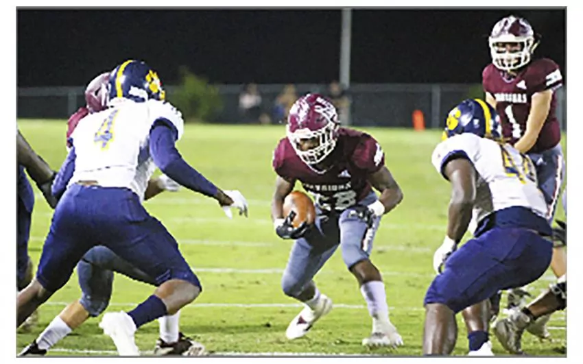 The Warriors of Nanih Waiya fought off a second-half challenge from a talented West Lowndes team to take a 39-24 home win on Friday night, notching it’s 51st connective region victory in the process. The win pushes Nanih Waiya to 3-0 overall on the year and 2-0 in Region 3-1A play with a big league road game looming on Friday at French Camp Academy. “It doesn’t get any easier,” NW head coach James Courtney said of playing French Camp. “They are well coached and play hard. They will be ready for us.” The Warriors used its vaunted running game to take control of things early in the game, leading 27-6 at the half, and 33-6 midway in the third quarter before the momentum shifted dramatically. After West Lowndes had scored on a 5-yard run to cut it to 33-12, they were driving again when one of their players was shaken up in the end zone on an incomplete fourth-down pass and was taken from the field in an ambulance. The player was treated at the hospital and later released. But at the time, it took the air out of the game, especially on the Nanih Waiya sideline. “That kind of thing obviously shakes everybody up,” Courtney said. “Nobody likes to see a kid get hurt. It affected us in a negative way and fired them up.” After getting the ball back, West Lowndes scored on a 7-yard run midway in the third quarter to make it 33-18 before following that up with a 55-yard touchdown pass to cut it to 33-24 with 2:11 left to play. The pass for the two-point conversion, in an effort to make it a 7-point game, fell incomplete. Nanih Waiya responded on its next drive, with running back Austin Sanders scoring on a direct snap on a 39-yard run with 1:04 left to play to put the game away. “When we need him and called on him he went in and hit a home run for us,” Courtney said. Ked Moore made a trio of big plays for NW during the game as well, picking off a pass in the end zone when the game was still scoreless in the first quarter, grabbing a 22 yard pass on third and long to set up Nanih Waiya’s first touchdown — a 5-yard run on fourth and one by Tyquan McCully — and hauling in a 28 yard pass on a nice throw by Tanner Courtney for a touchdown late in the first half. “We were able to throw it when we could protect,” coach Courtney said. “We made some good plays in the passing game. We have to get better in that capacity. We were able to complete a few that loosened some things for us early.” The other NW touchdowns came on a 13-yard run by McCully, a 1-yard run by Sanders and a 23-yard run by J.R. Coleman. While the Warriors did give up 206 passing yards to West Lowndes, the coverage was clearly better. “We were in good shape, we just have to make a play on the ball,” he said “We will get better in that capacity covering. It’s the hardest position to play on the field,” he said referring to defensive back. Sanders and McCully both rushed for more than 100 yards in the game for Nanih Waiya.