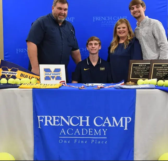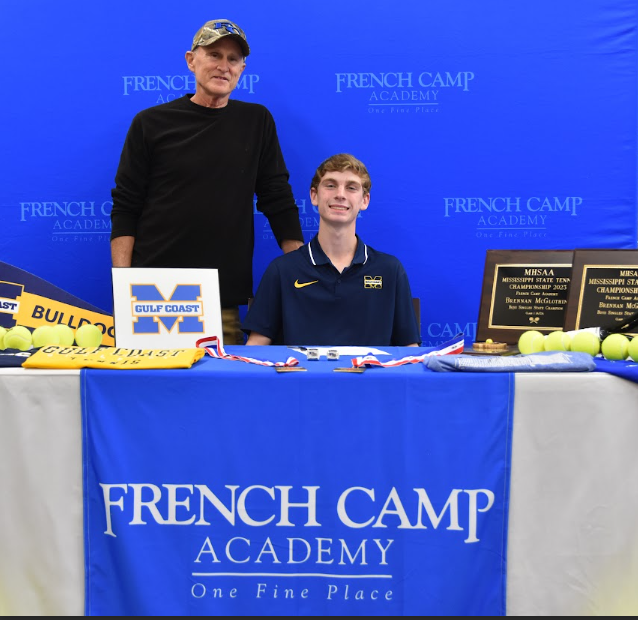 French Camp Academy's men's singles tennis player, Brennan McGlothin, will continue his tennis career and play for the Bulldogs at Mississippi Gulf Coast Community College.