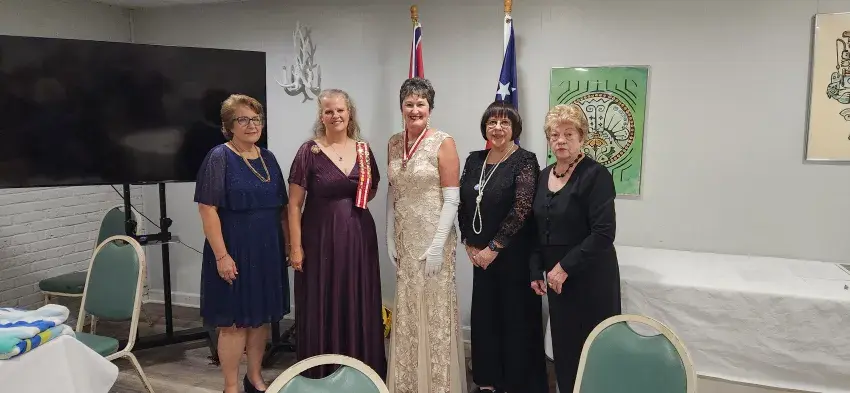 Members of the Winston Guards Chapter gather during the 129th Annual Mississippi Division convention held Sept. 19–20 at Lake Tiak-O’Khata. From left are Chapter Second Vice President Robin Black, Chapter President Beth Hemphill, President General Julie Hardaway, Chapter Historian Gwynn Hall and Chapter Vice President Connie Faye Estes.