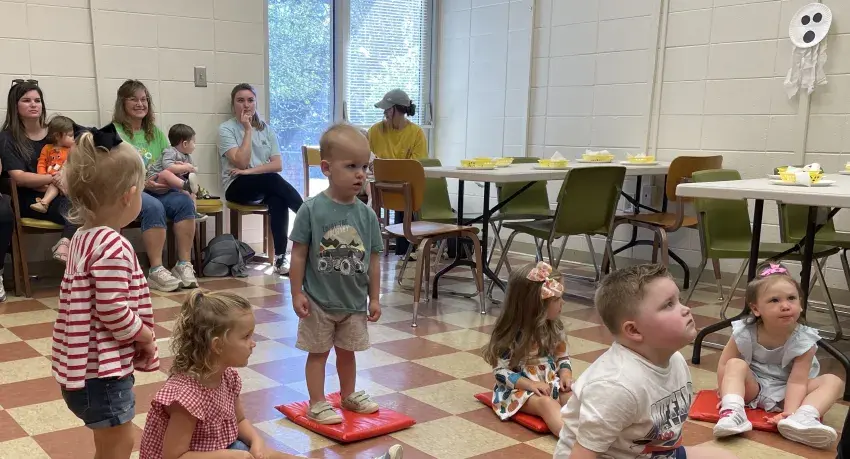 Children attending Storytime at the Webster County Public Library on Oct. 1 welcomed spooky season with a walk around the “pumpkin patch,” a scarecrow song and the story “Pete the Cat: Trick or Pete.” They ended the day by making a happy ghost.