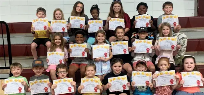 August Students of the Month at Eupora Elementary School included (front row) Henry Gary, Thomas King, Arlo Thibodeaux, Ellen Hunt, Ginny Rose Skelton, William Edwards, Kaylee