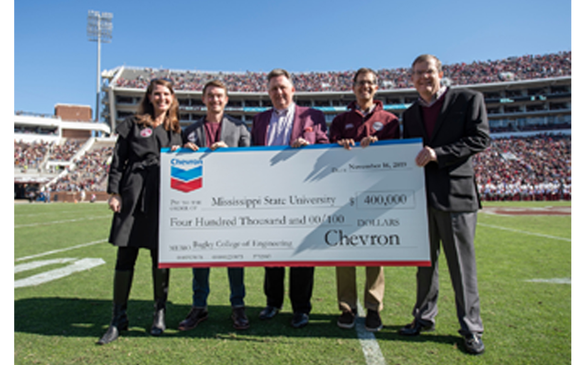 Chevron officials presented a check for $400,000 during a recent visit to the Mississippi State campus. As part of its commitment to supporting engineering education, Chevron also made a $300,000 donation to help grow the Engineering on the Coast program in 2015. The partnership between Mississippi State and Mississippi Gulf Coast Community College allows students to receive a bachelor’s degree in electrical or mechanical engineering from MSU without leaving the Gulf Coast. Overall, Chevron has invested more than $ 4 million at Mississippi State since 2007.