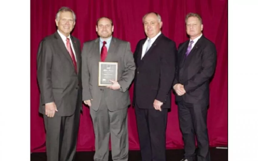 In the photo from left to right are Executive Vice President Of Marketing, Al Dees, Alfa Insurance Agent Chris Coleman, Alfa Insurance President Jimmy Parnell, and Senior Vice President of Marketing for Mississippi, Darrell McNeal.