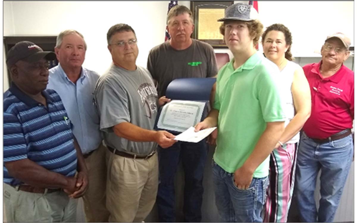 At the June 3 meeting of the Webster County Board of Supervisors, the board presented Klayton Johnson with a $500 check as the Webster County recipient of the Mississippi Association of Supervisors County Employee Scholarship.