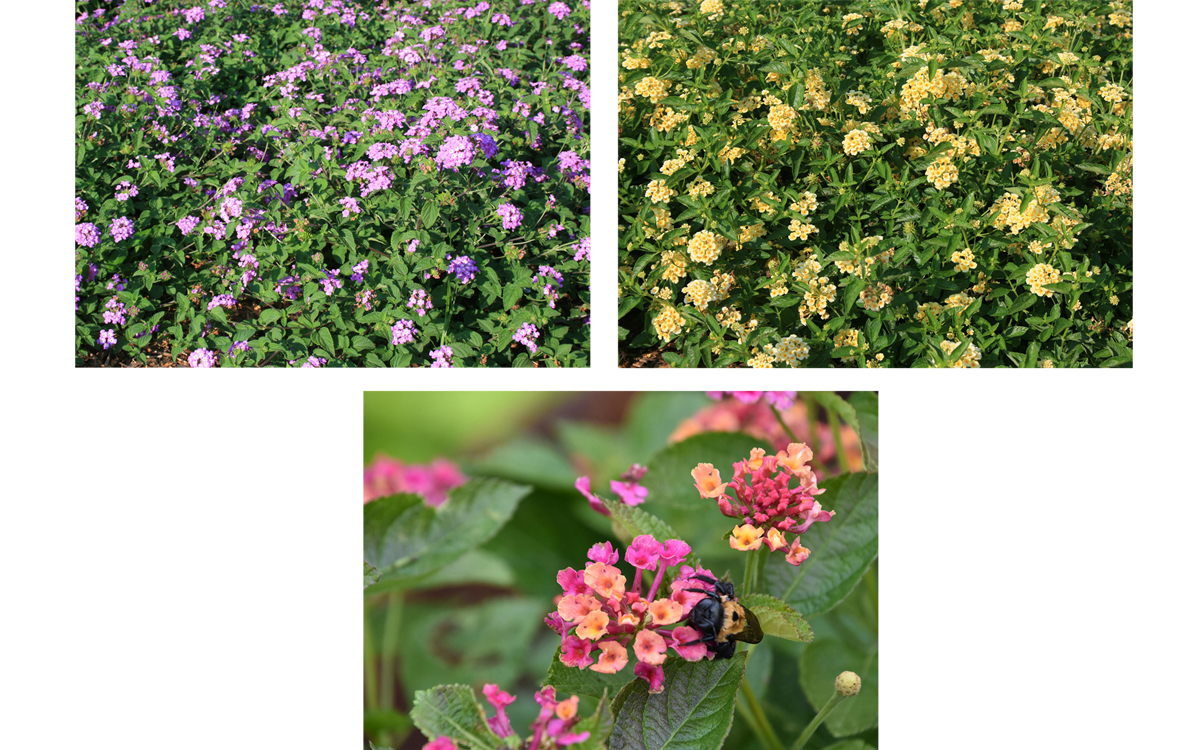 There are quite a few colors available. Lemonade lantanas are mounded plants with bright-yellow flowers. They have extreme heat and drought tolerance and are low maintenance.