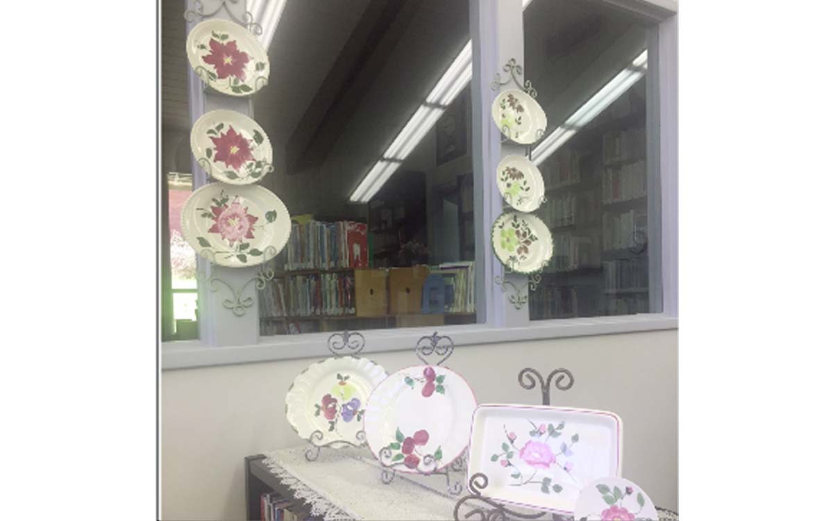 The Maben Public Library has a new display for the patrons to view: a selection of Blue Ridge dishes that were hand painted back in the early 1900s.