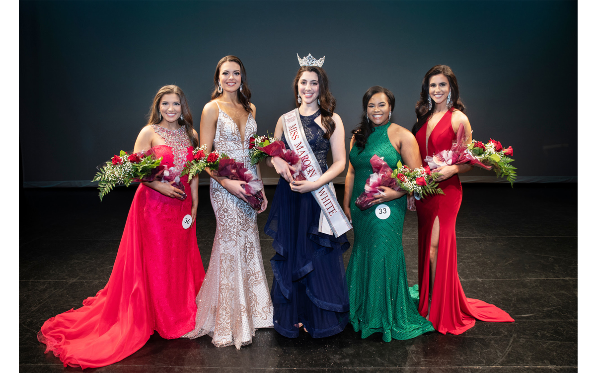 STARKVILLE, Miss.—Grace “Gracie” Anello, center, a sophomore geosciences/professional meteorology major from Roswell, Georgia, was named 2020 Miss Maroon and White during the Thursday [Feb. 27] pageant at Mississippi State University.