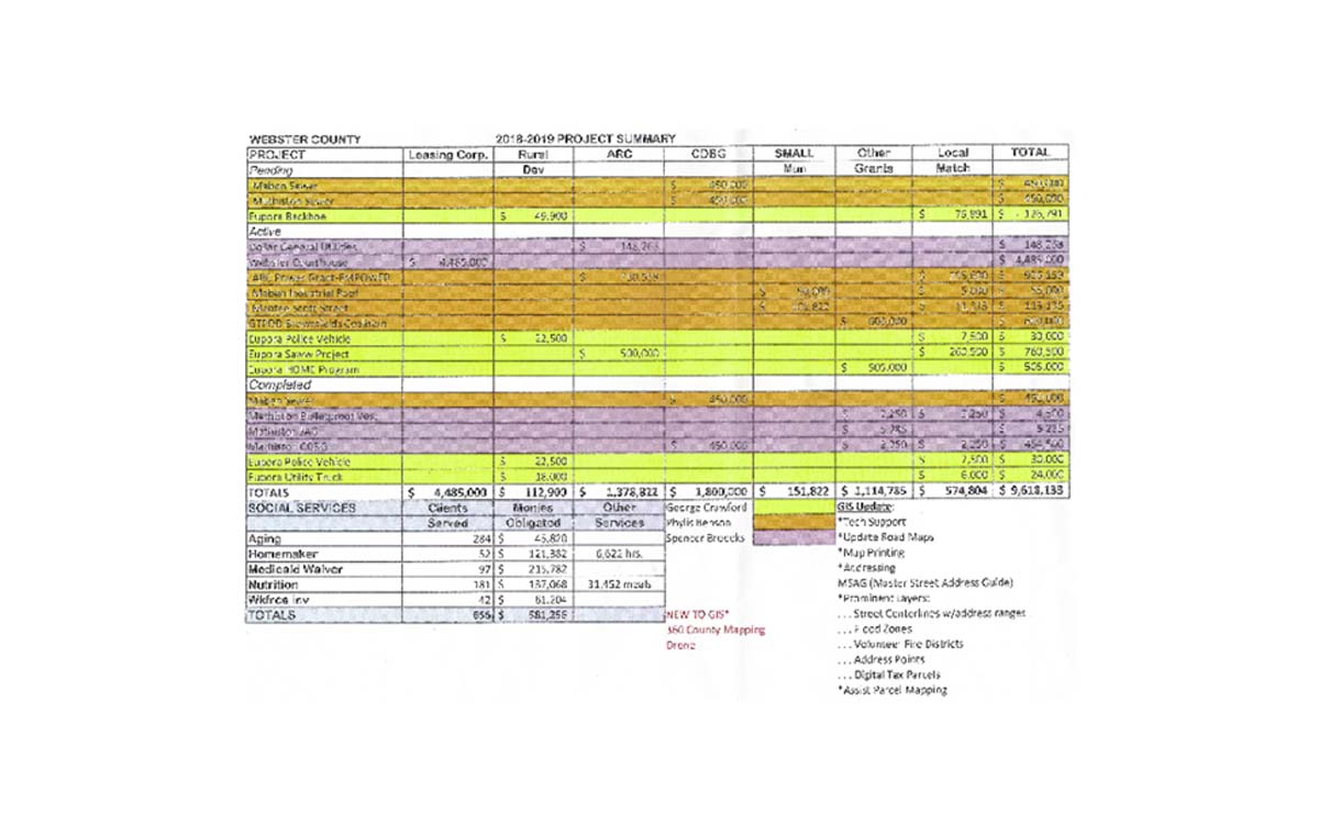 GTPDD staff updated advisory members on projects for fiscal 2019. Discussion during the county overview summary included all pending, active and completed grant applications for this past year.