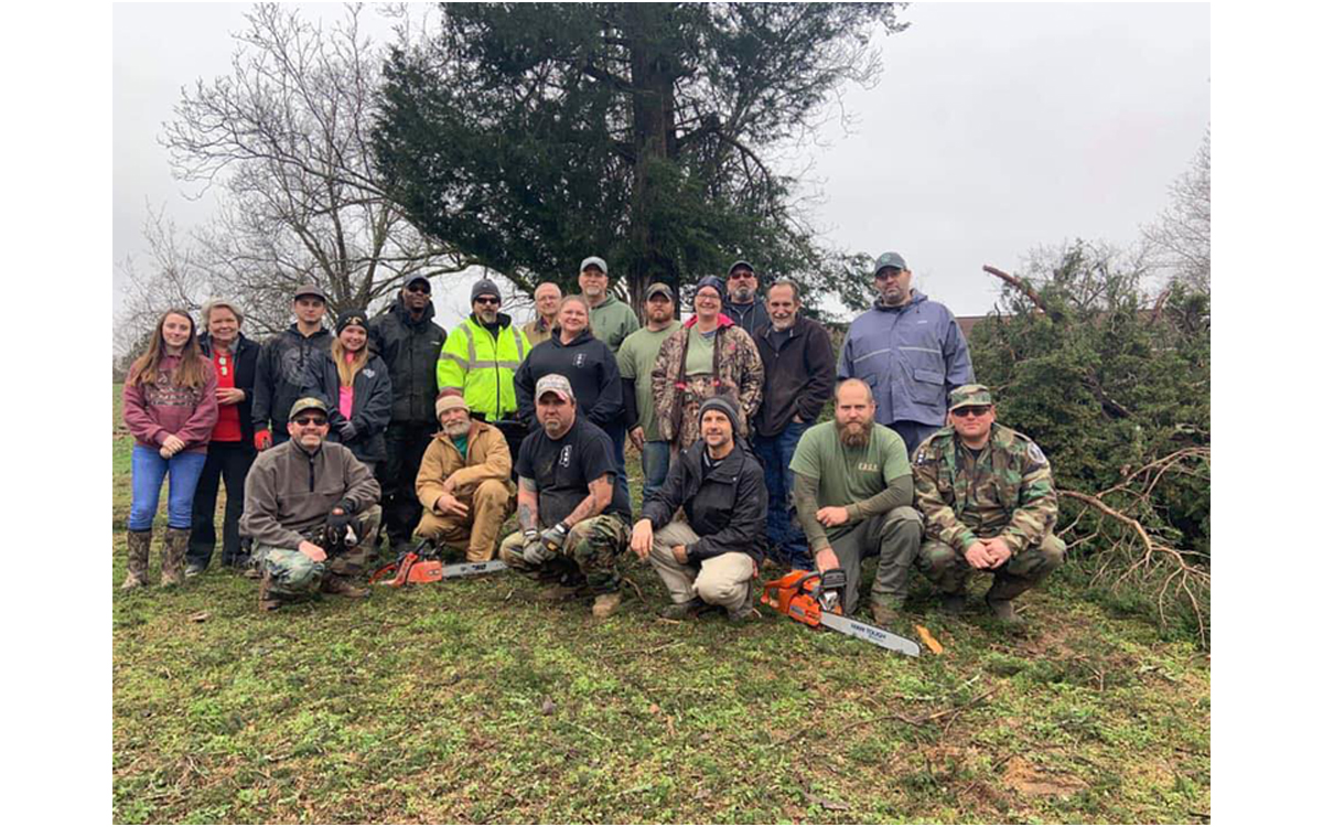 Volunteers came from DeSoto, Tate, Carroll, Rankin and Covington Counties. Upon their arrival at 6:30 a.m. Saturday, while the storm was still raging, they met with Board of Supervisors Dist. Five Supervisor Michael Lee, who was glad to accept the offer of assistance. “I knew where the damage was and they didn’t hesitate,” he said of the group. “We went back over the affected areas, I saw what they did, and I heard from property own- ers. They did a great job. We really appreciate them coming and helping us in this time of need in our county.”