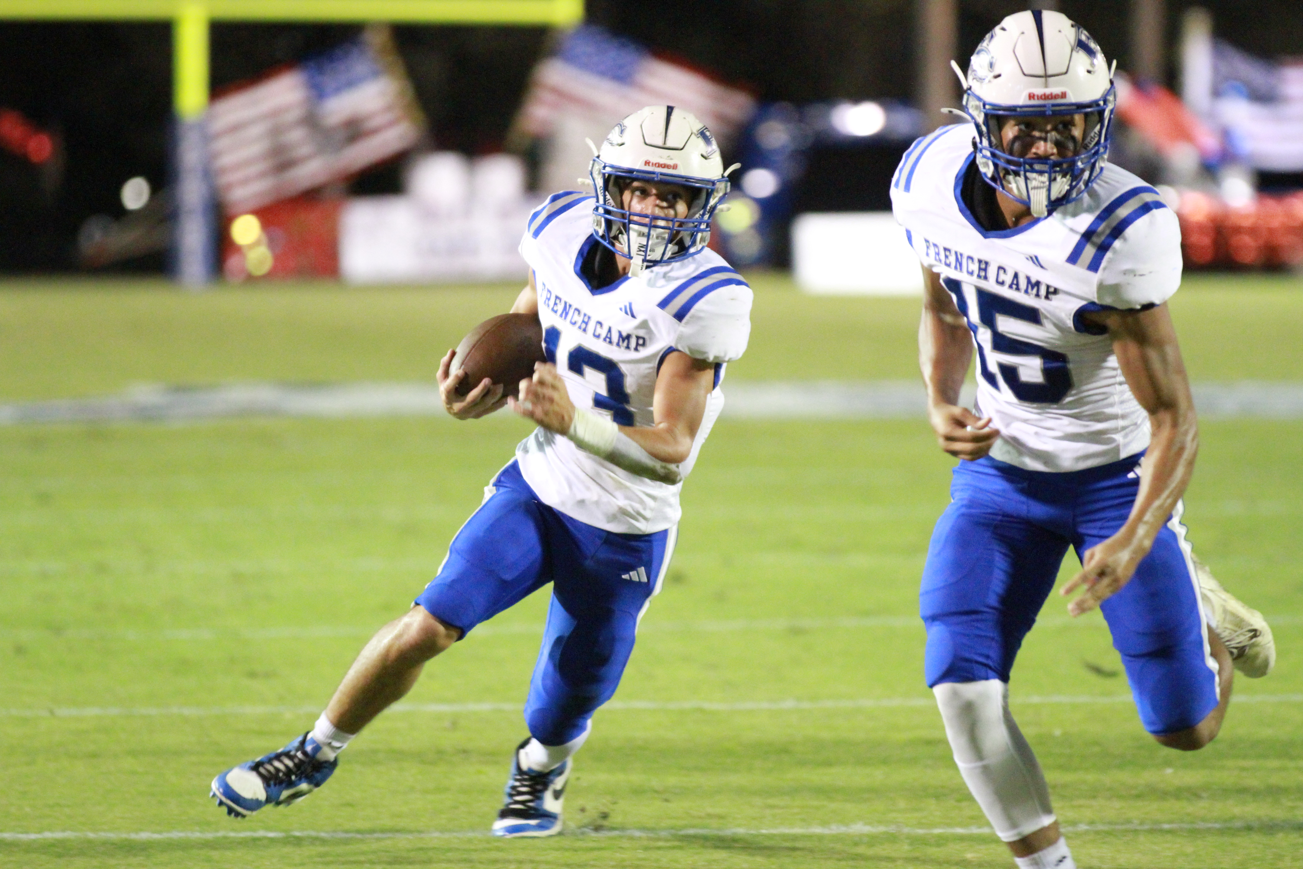 But the Panthers settled down and drove down the field and scored on a 10-yard run by Ryder Henderson with 4:22 left in the first. Drew Degroot hit the PAT and French Camp trailed 14-7.