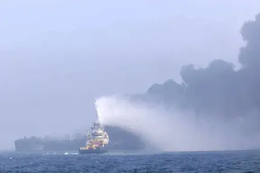 U.S.-based maritime management firm Crowley, which operates the Stena Immaculate, said the tanker “sustained a ruptured cargo tank containing Jet-A1 fuel,” when the container ship struck it, triggering a fire and “multiple explosions onboard,” with fuel released into the sea.