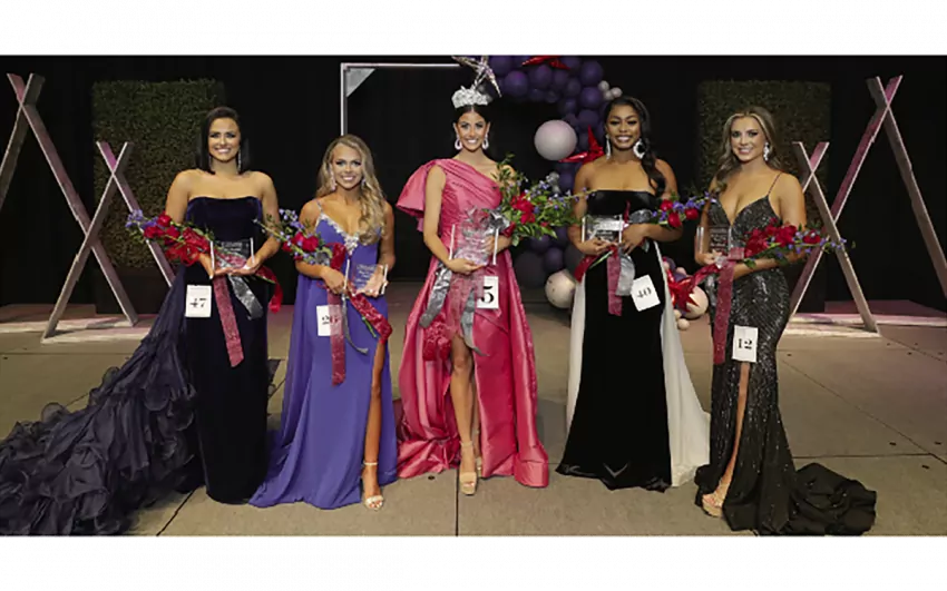 Zoe Bigham formerly of Winston County (center) was selected as Itawamba Community College’s Most Beautiful 2022 at the conclusion of the Apr. 14 pageant at the Fulton Campus. The top five include from left, Sydney Duggar of Guntown, fourth alternate; Emily Clowers of Pontotoc, second alternate; Bigham; A’Jalauh Caldwell of Sherman, first alternate; and Abbey Montgomery of Pontotoc, third alternate. The pageant was sponsored by ICC’s Travel Tribe. – Photo by C.J. Adams