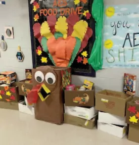 Joni McCulloch, Mitzi Kirk, and Brenda McNutt’s students at Ackerman Elementary School made birthday boxes for the school’s food drive. Each box contained a cake mix, frosting, a can of soda, birthday plates, and candles. Instructions for making the cake and some candy was also included.