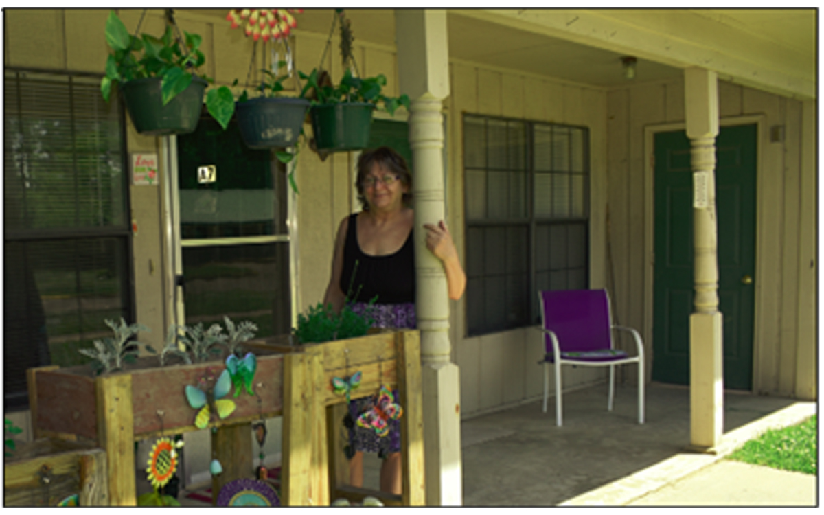 Those who have bad backs and the like are not bending over but are planting higher up! Planters, pots, or wooden troughs seem very popular. You can see Kay with her wonderful ‘garden of Eden’ full of both flowers and vegetables. She particularly loves the jalapenos because she loves to cook and fresh food never goes wasted. Notice the lavender, the Dusty Miller, and as she says ‘lots of green plants’. Some folks also decorate with those little tingling things…butterflies, dragonflies, suns, moons, and well many different choices. What a great use of such a small space!