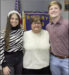 Program Chair Parker Blaylock welcomes guest speaker Robin Thomas Carroll at the Jan. 31 meeting of the Eupora Rotary Club. Carroll, a Eupora native is a certified lighting consultant and assistant professor of interior design at Mississippi State University.